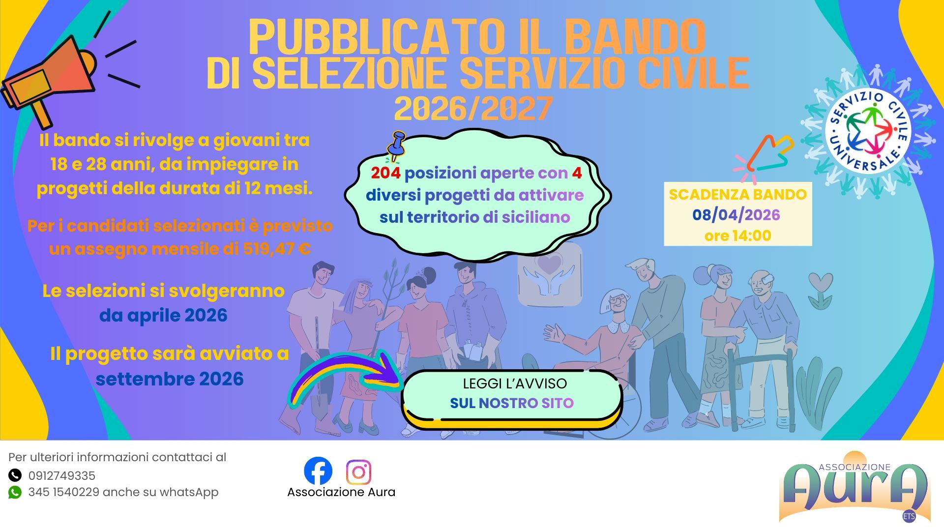 L'Associazione è iscritta all’Albo Unico degli Enti di Servizio Civile Universale della Regione Sicilia in qualità di Ente Titolare (codice SU00518)
